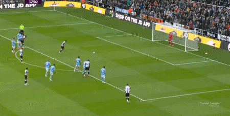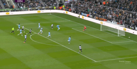 第34分钟,威洛克直塞,伊萨克射门击中穆里略折射入网,纽卡4-1。